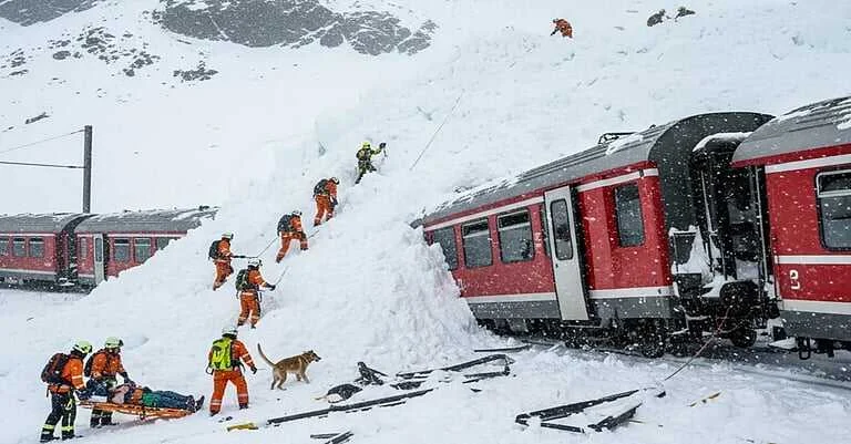 ব্যুরো নিউজঃ সুইজারল্যান্ডঃ সোমবার ভোরে দক্ষিণ সুইজারল্যান্ডে আচমকা পাহাড় থেকে নেমে আসা তুষারধসে ট্রেন লাইনচ্যুত হয়ে পড়ে। সুইস আল্পস পর্বত থেকে নেমে আসা তুষার ধসে বেলাইন হয়ে যায় একটি যাত্রীবাহী ট্রেন। তাতে প্রায় ৮০ জন যাত্রী ছিলেন। তাঁদের মধ্যে বেশ কয়েকজন গুরুতর আহত হয়েছে বলে খবর।