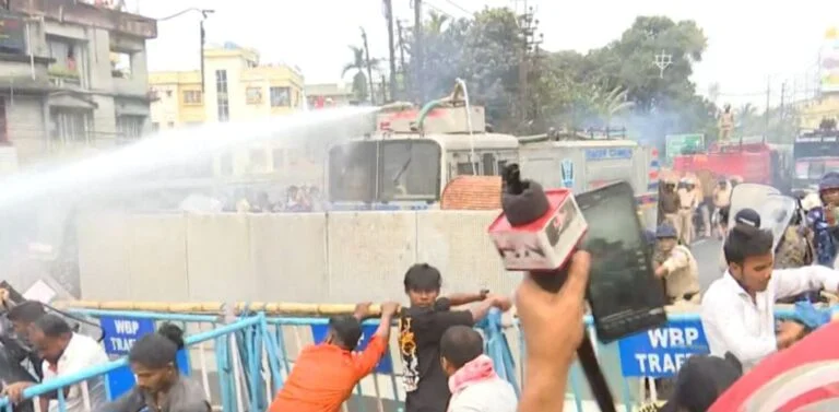 নিজস্ব সংবাদদাতাঃ শিলিগুড়িঃ শিলিগুড়িতে এক আদিবাসী অন্তঃসত্ত্বাকে ‘মার’ সিভিক ভলান্টিয়রের। আর তাতে মৃত্যু গর্ভস্থের। অভিযোগ ঘিরে রণক্ষেত্রের চেহারা নিয়েছে। প্রতিবাদে বৃহস্পতিবার দুপুরে আদিবাসীরা উত্তরকন্যা অভিযানে যান। আর তা নিয়েই ধুন্ধুমার পরিস্থিতি। পুলিশের ব্যারিকেড টপকে এগিয়ে যাওয়ার চেষ্টা করেন আদিবাসীরা। পুলিশ বাধা দিলে ধস্তাধস্তি হতে থাকে দুপক্ষের মধ্যে। পরিস্থিতি এতটাই বেকায়দা হয়ে যায়, টিয়ার গ্যাসের সেল ফাটাতে হয় পুলিশকে। জল কামান ছুড়তে হয়। মাইকিং করছে পুলিশ।