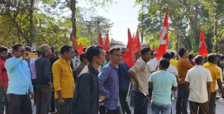 নিজস্ব সংবাদদাতাঃ জলপাইগুড়িঃ সিপিএমের মিছিলে সামিল তৃণমূল নেতা-কর্মীরা! ধামাচাপা দিতে তৎপর তৃণমূল নেতা। পেটের লড়াইয়ের টানে এক হয়ে গেল দুই দল। বামেদের শ্রমিক সংগঠন সিটুর মিছিলে সামিল হলেন তৃণমূলের শ্রমিক সংগঠনের নেতা- কর্মীরা। নতুন টোটো রেজিষ্ট্রেশন ফি কেন নেওয়া হচ্ছে? এই প্রশ্ন তুলে বিক্ষোভ দেখায় সিটু। আর সেই বিক্ষোভ মিছিলে সামিল তৃণমূলের শ্রমিক সংগঠন আইএনটিটিইউসি র সদস্যরা। চাঞ্চল্য ছড়াল রাজনৈতিক মহলে।